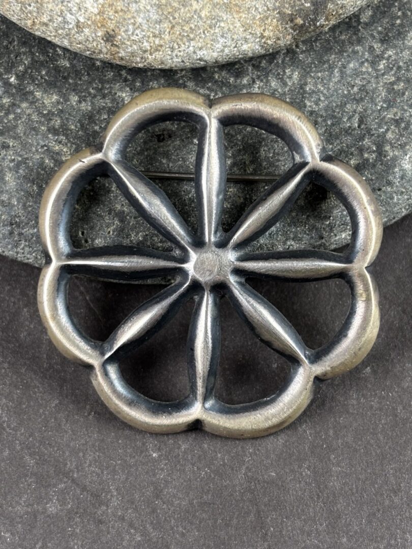 Home / Jewelry / Pendants and Pins / Sandcast Sterling Pin Sandcast Sterling Pin$132.00 Out of stock Description Reviews (0) Description By Wilson Begay, Navajo this round cast pin recalls a peyote button with its eight sections. 1.75″ diameter Reviews There are no reviews yet. Be the first to review “Sandcast Sterling Pin” Cancel replyYour email address will not be published. Required fields are marked *Name * Email * Type in the text displayed above Your rating * Rate… Perfect Good Average Not that bad Very poor Your review * Δ Related products Pendants and Pins Navajo Sandcast Silver Pin Sale! Sale! Pendants and Pins Morenci Turquoise Pin/Pendant Pendants and Pins Naja Pendant with Green Turquoise Pendants and Pins , Vintage Pieces 1950s Zuni Channel Coral Inlaid Pin/Pendant